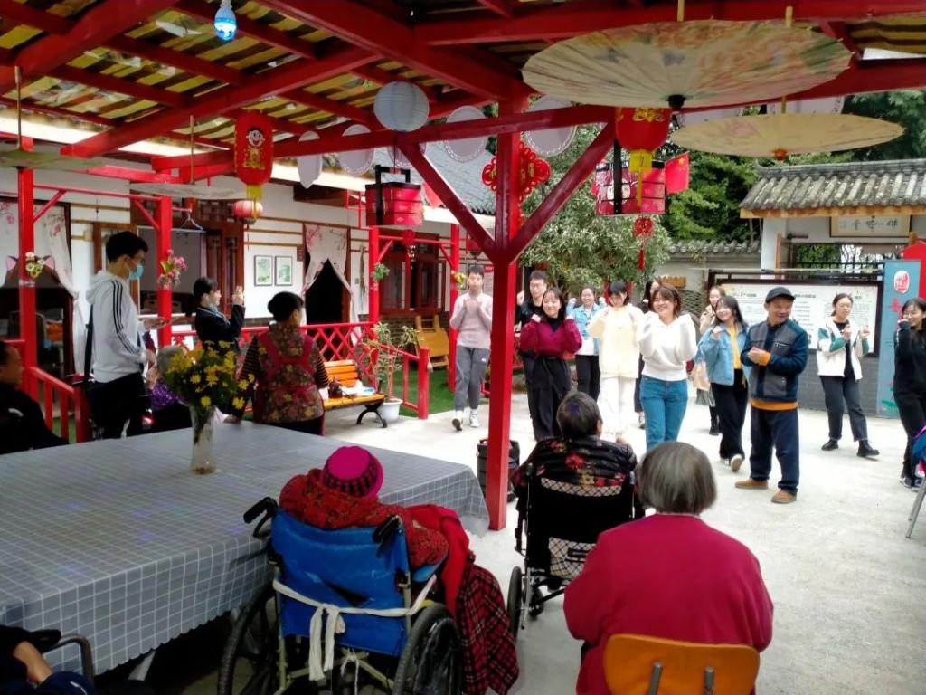 随后志愿者们为老人们带来了精彩的表演,载歌载舞欢聚一堂。温馨的氛围笼罩着整个小院,志愿者们先是唱起了几首经典老歌,老人们也跟随着一同欢唱、拍掌,悠长的歌声中夹杂着笑语声不断。随即,志愿者们也带来了欢快的舞蹈以及幽默风趣的小品节目,为老人们的生活注入了更多活力,也增添了更多的色彩。而后,志愿者们又共同献上一曲慷慨激昂的红歌,让老人们在忆起曾经的峥嵘岁月中感受美好温情。在表演结束后,志愿者们向老人献上了精心制作的精美重阳贺卡,每一张贺卡上都满载着志愿者的真诚祝福。