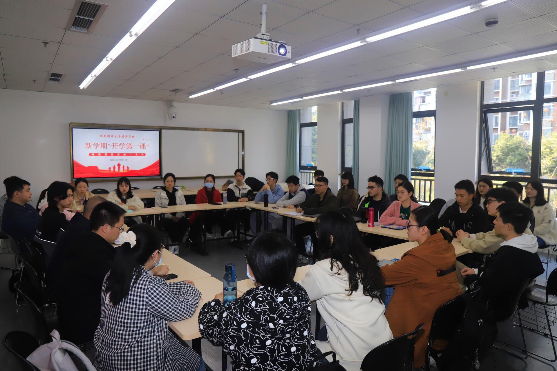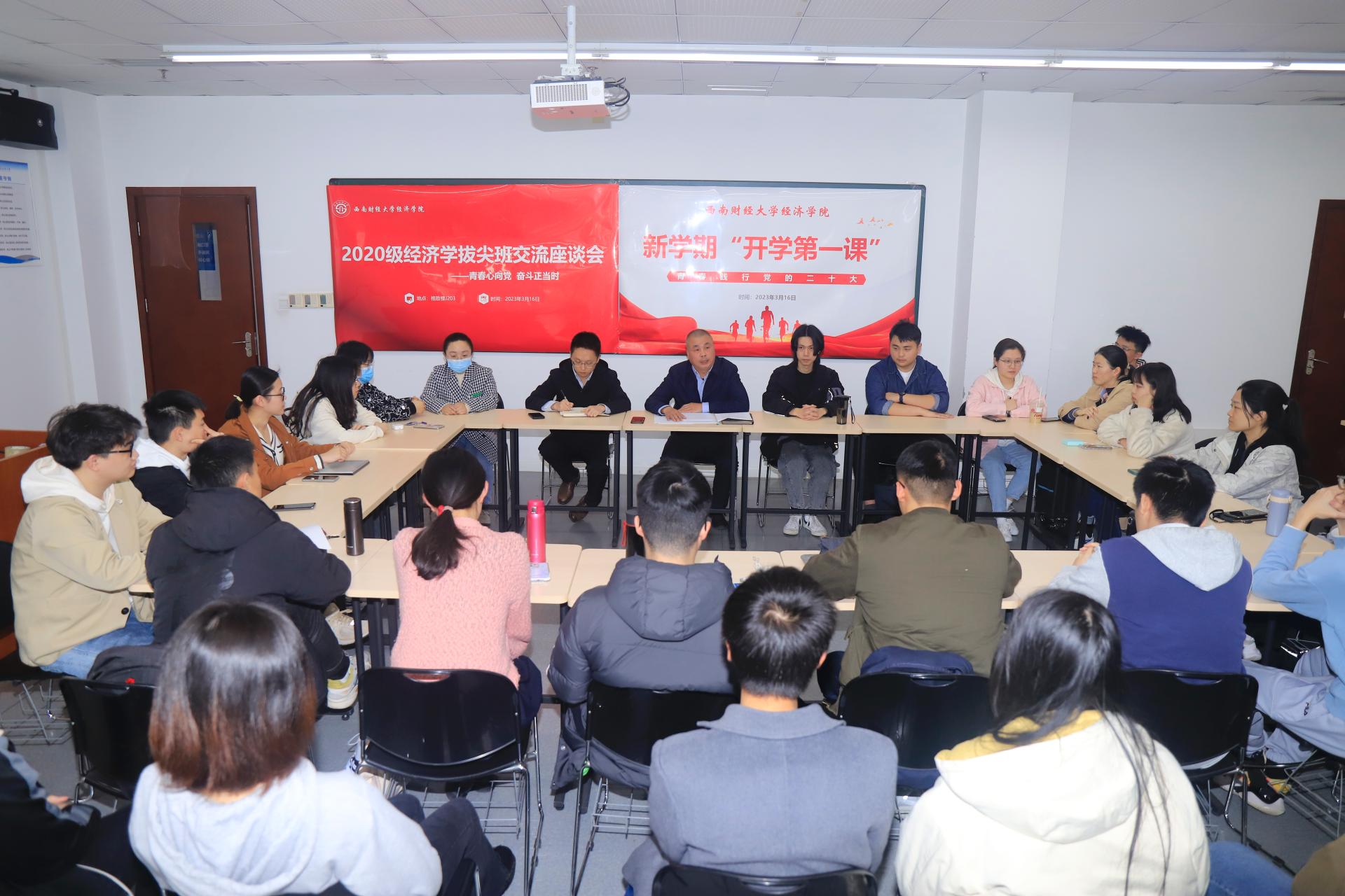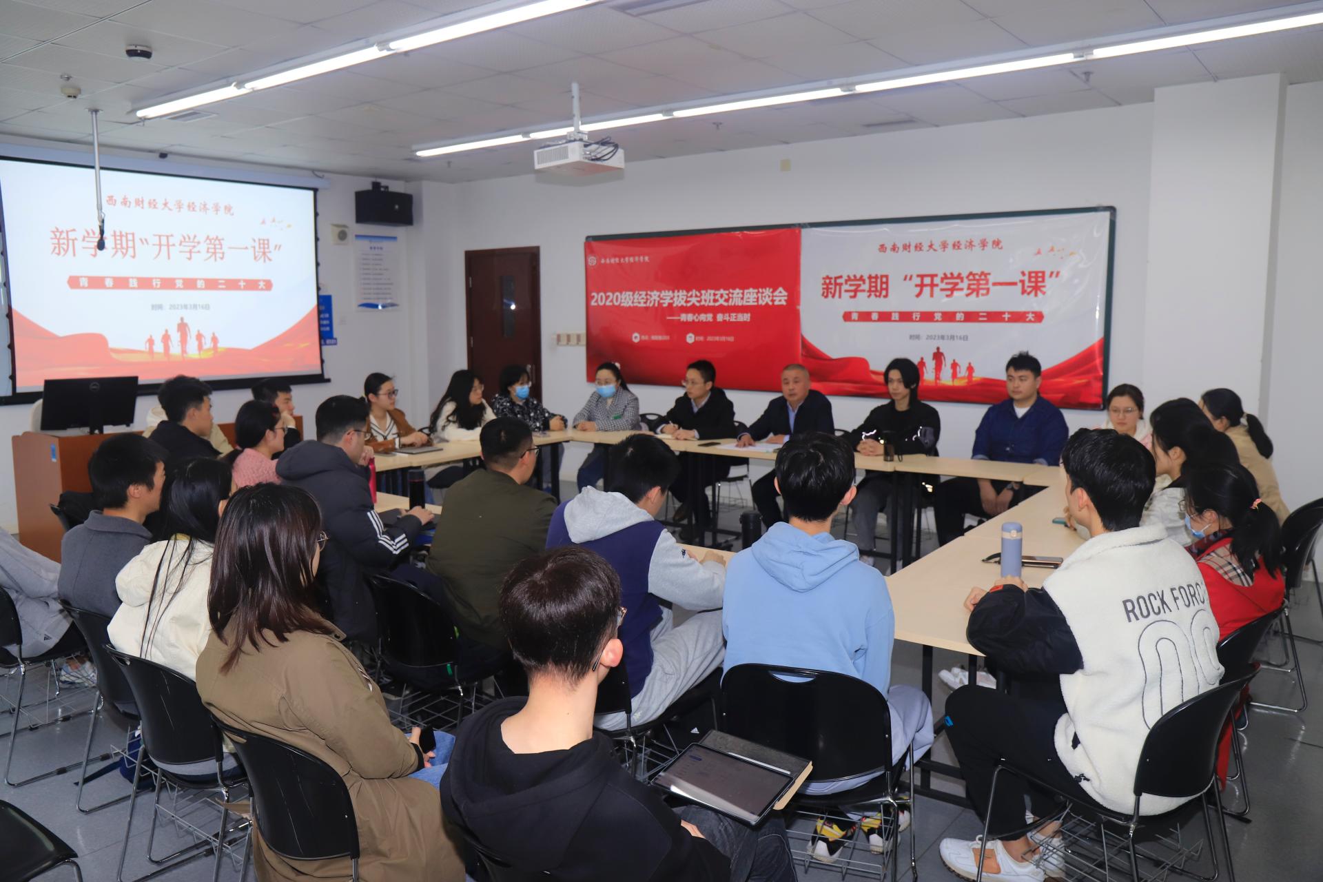 为深入学习宣传贯彻党的二十大精神,激发青年学生坚定不移跟党走、矢志奋斗新时代的真挚情感,努力成长为担当民族复兴大任的时代新人,2023年3月16日下午,ylzzcom永利总站线路检测党委书记兰敏在格致楼J203给2020级经济学拔尖基地班全体同学以《刻苦学习,勤于实践,努力成为担当民族复兴大任的时代新人》为题讲授“开学第一课”。