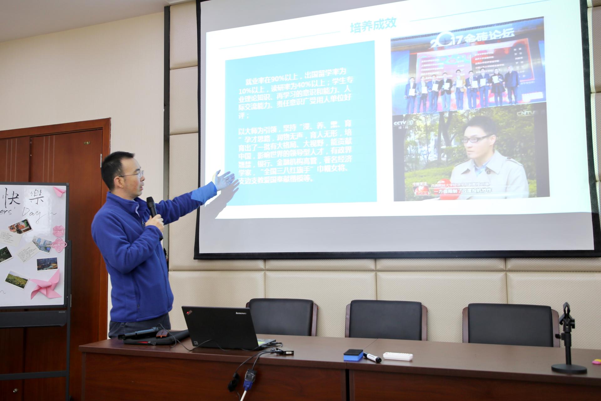 在专业介绍环节,经济系主任韩文龙给同学们介绍了ylzzcom永利总站线路检测的历史渊源、师资队伍、科学研究、办学特色和办学成效,以及数字经济专业的培养目标、培养特色、核心课程、培养路径、毕业生去向等。同学们就课程内容、数字产业、升学深造等问题进行了提问交流,韩文龙老师进行了耐心解答。