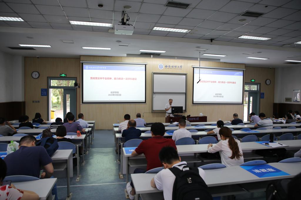 兰敏介绍了本次为期五天的学校中层干部读书班的情况,重点传达了学校党委书记赵德武《把握大势 明确任务 推动学校事业高水平发展》的主题报告精神和中干会总结讲话精神。易敏利重点传达了校长、党委副书记卓志《站高谋远 聚智聚力 科学谋划学校“十四五”规划》的主题报告精神和本学期学校工作部署。并强调,学院将按照学校工作部署,做好“十四五”发展规划,加快推进学校“双一流”建设工作,扎实做好第五轮学科评估、决战决胜脱贫攻坚等重点工作。