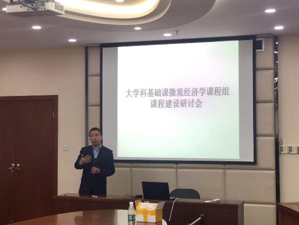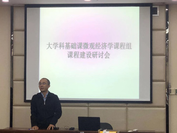 ylzzcom永利总站线路检测西方经济学研究所所长袁正教授首先就大学科基础课微观经济学课程组课程建设发表讲话。袁老师从统一考核、课程思政、慕课建设、教材编写以及日常工作五个方面提出要求和建议。