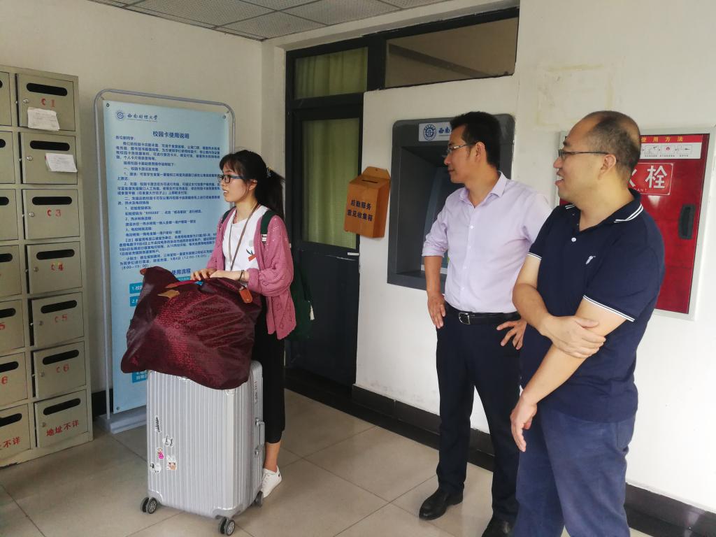 9月6日下午,ylzzcom永利总站线路检测分党委书记兰敏、执行院长易敏利、副院长盖凯程、分党委副书记胡舒、分团委书记兼辅导员王芳走访了慎思园、笃行园等2019级硕博新生寝室,亲切慰问了新生入校的情况。
