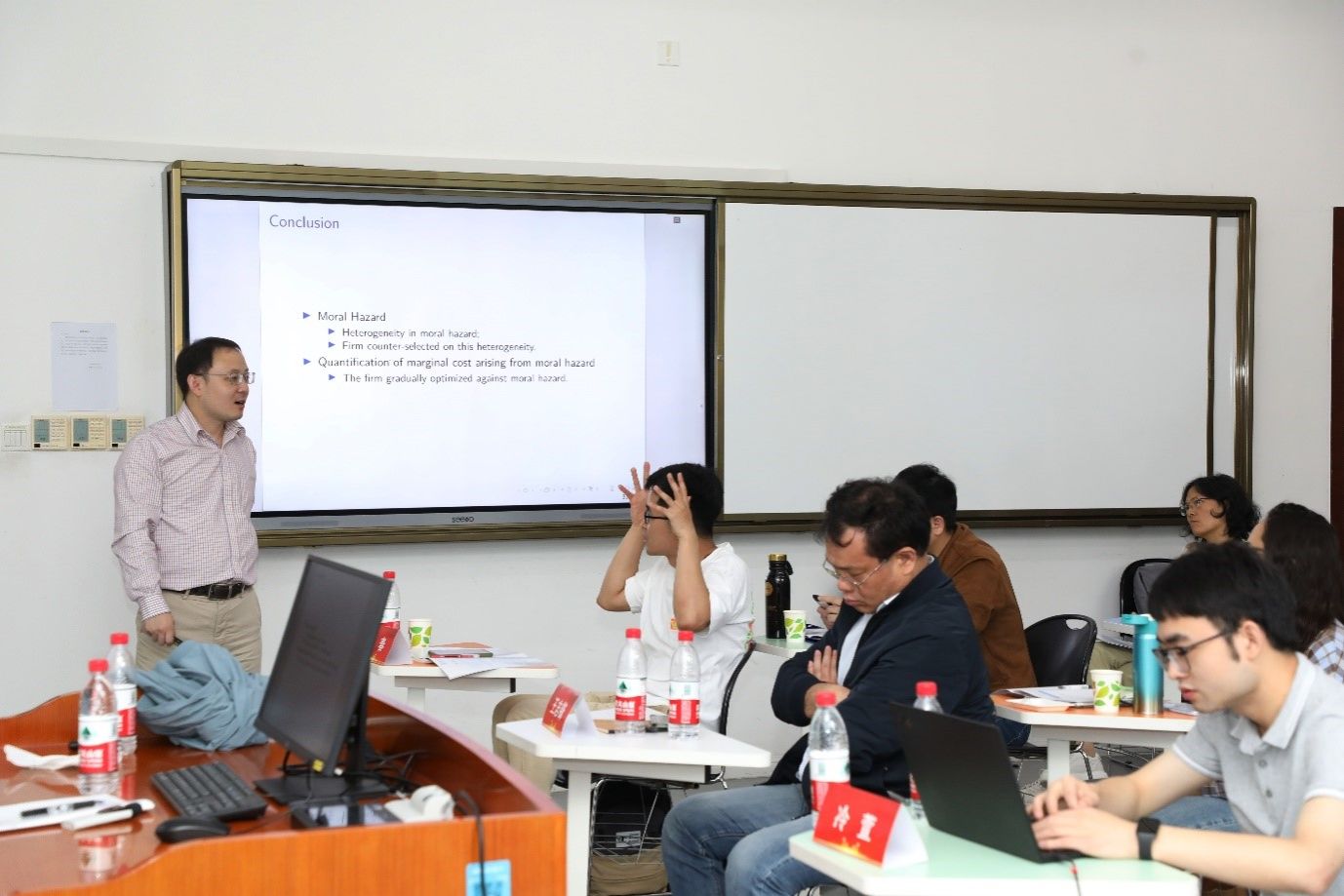 来自复旦大学的陈登科老师汇报了题为《理解企业异质性:回顾与展望》的论文。该文章从本质、内在特征上来判别企业的异质性,从存在性、技术性上谈论企业异质性识别的可能性和重要性,拓展传统的代表性企业分析模型进而设计出异质性企业分析模型;通过改进生产函数,本文比较了宏观上calibration和计量上estimation方法对于模型参数识别、估计、获得的方法在此问题上的优缺点;同时,陈老师详细回顾了近年来国际上学界内对这个问题的研究进展和情况,提出在算力不高的情况下,引入高阶多项式逼近难以计算的目标函数,从而可以在数理上简化求解过程,此外还对这一理论问题的实际估计(应用计算)进行了详尽的探讨。