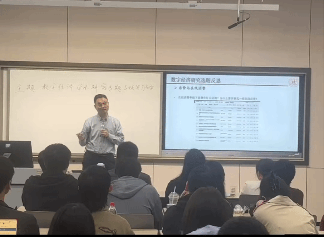 讲座结束后,郭教授与现场师生展开了热烈的互动交流和问答讨论。郭教授不仅耐心解答了大家提出的关于中国数字经济发展和数字经济指标构建的问题,还分享了他在经济学研究领域的独到见解。通过这场互动,师生们对中国数字经济的未来发展前景有了更加清晰的认识,也对经济学论文的选题方法、研究策略和写作技巧有了更深刻的理解。