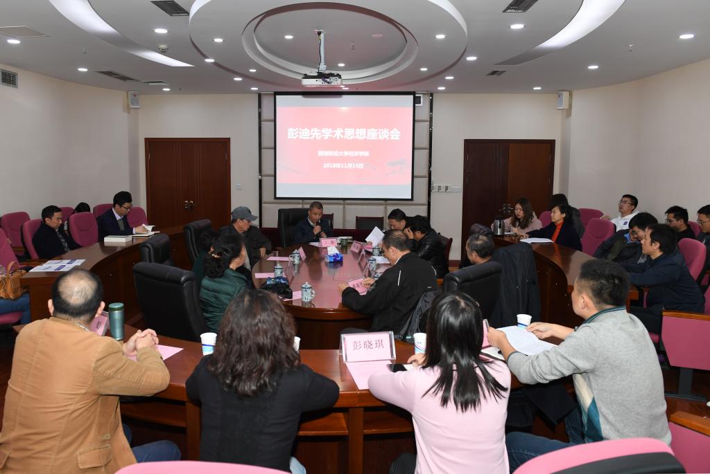 2018年11月15日下午,以纪念彭迪先先生诞辰110周年为主题的“彭迪先学术思想座谈会”在ylzzcom永利总站线路检测柳林校区格致楼918举行。此次座谈会由ylzzcom永利总站线路检测主办,彭迪先先生之女彭亚华女士、彭迪先先生之子彭少华先生等携家属出席,ylzzcom永利总站线路检测党委书记兰敏同志主持会议,学校党委宣传部副部长吴晶致辞,ylzzcom永利总站线路检测前院长刘方健教授、教师代表王朝明教授、蒋南平教授、吴垠教授、袁正教授先后发言,分别介绍了彭迪先先生的学术成绩、对学科建设的卓著贡献、对学校和学院建设发展的重要作用等。