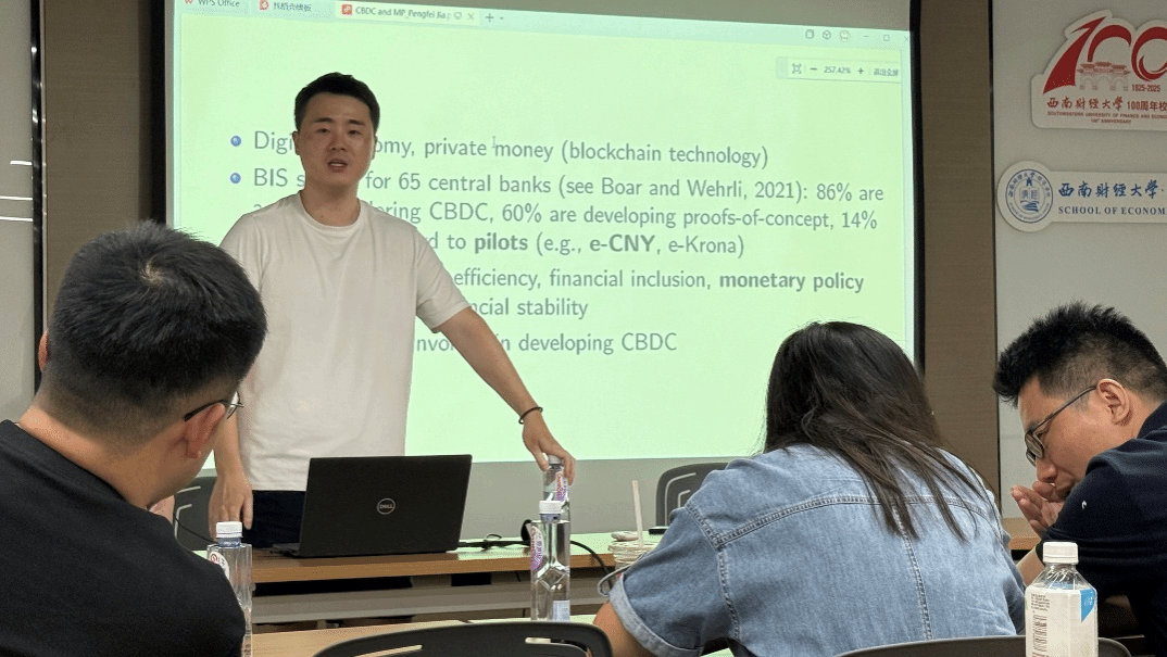 随后,贾鹏飞老师基于其研究团队的最新成果,通过构建包含央行数字货币“双层运营”模式和常备借贷便利的世代交叠模型,研究央行数字货币对货币政策传导效率的影响。研究发现,央行数字货币的引入可显著提高货币政策基准利率传导至存款和贷款利率的效率。具体而言,央行数字货币的使用可增加传统的常备借贷便利利率传导至贷款利率的效率;央行数字货币的利率可作为创新型货币政策工具,其使用可进一步增强货币政策向存款利率和贷款利率的传导,有助于揭示央行数字货币影响利率政策传导效率的内在机制。