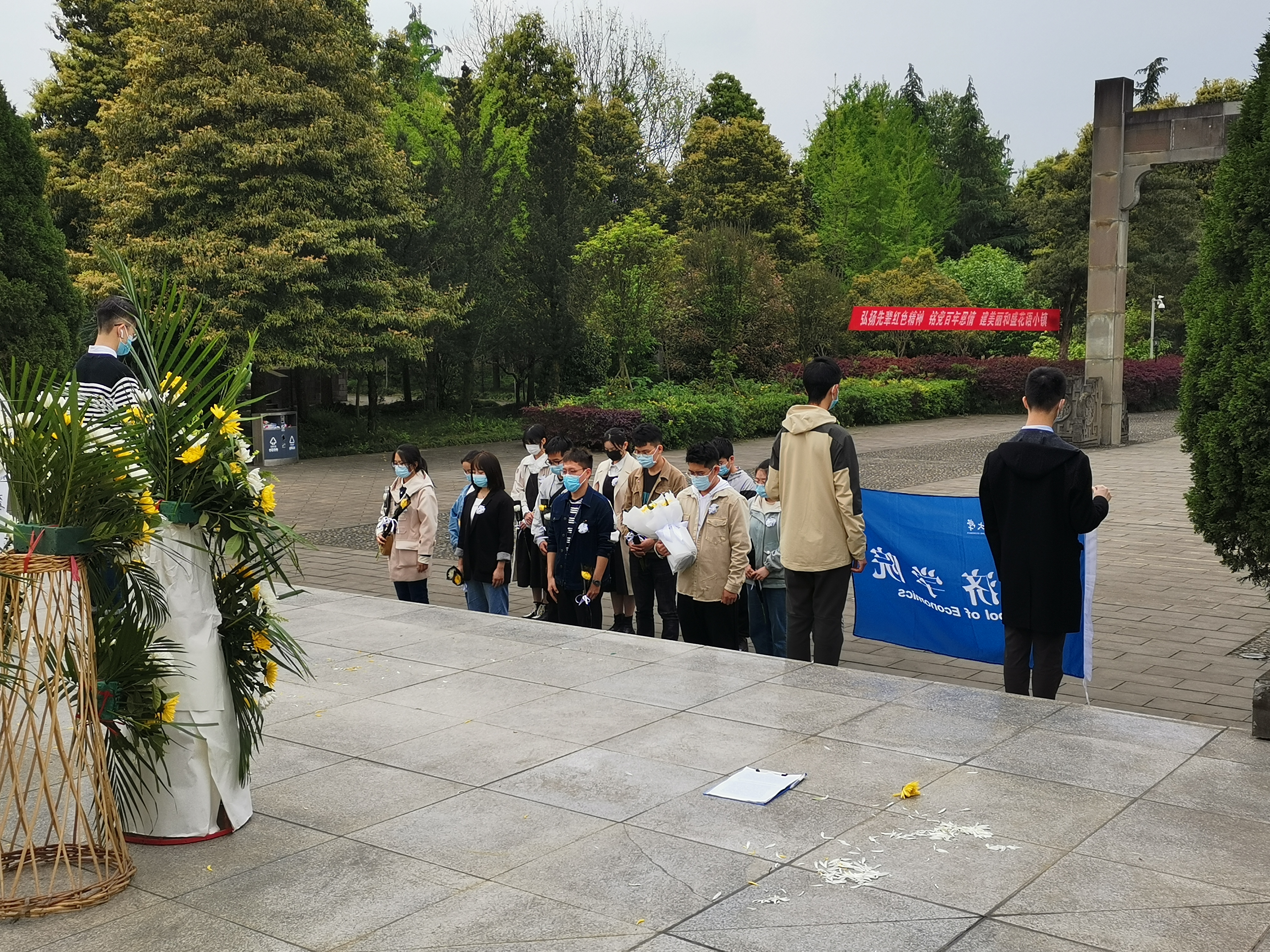 首先,全体人员在烈士纪念碑前脱帽肃立,以严肃恭敬的心态默哀三分钟,向先烈表示哀悼。随后,学生代表向革命烈士敬献花圈,对革命先烈们为了新中国的诞生,为了下一代的幸福,浴血奋战,不怕牺牲表示最真挚的感谢。最后,学生代表吴研进行了慷慨激扬的演讲,向我们讲述了在革命斗争和社会主义建设中,无数革命志士洒热血,抛头颅,捐躯献身,让我们深刻地认识到身为新代青年的我们应该继承发扬先烈们的革命精神,把爱国之志变成报国之行,继承并发扬革命先驱们英勇无畏的精神,扬正气,树新风,不忘初心,牢记使命。在祭扫活动即将结束的时候,前来的学生代表们详细了解了英雄先烈们背后的故事,感动之余,怀着崇敬的心情为墓碑献上鲜花,伫立墓前,久久不能平静。